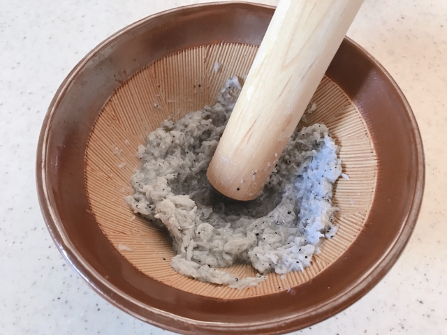 最初は裏ごししてごく少量をおかゆに混ぜ、体調の変化がないかを見ながら進めます。